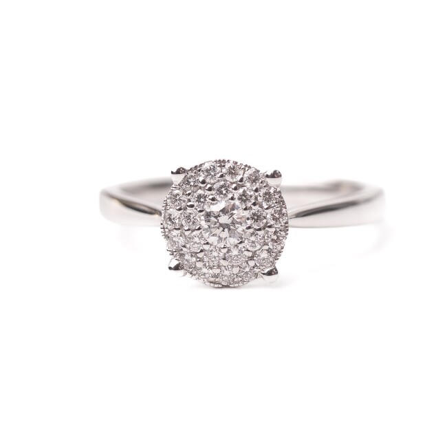 Solitaire or blanc 18k, pavage diamants