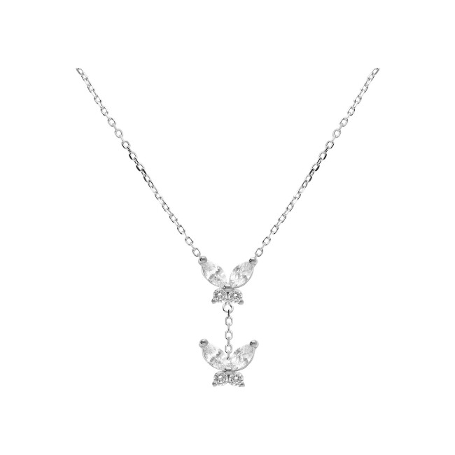 Collier argent rhodié 2 papillons oxydes blancs sertis 38+5cm