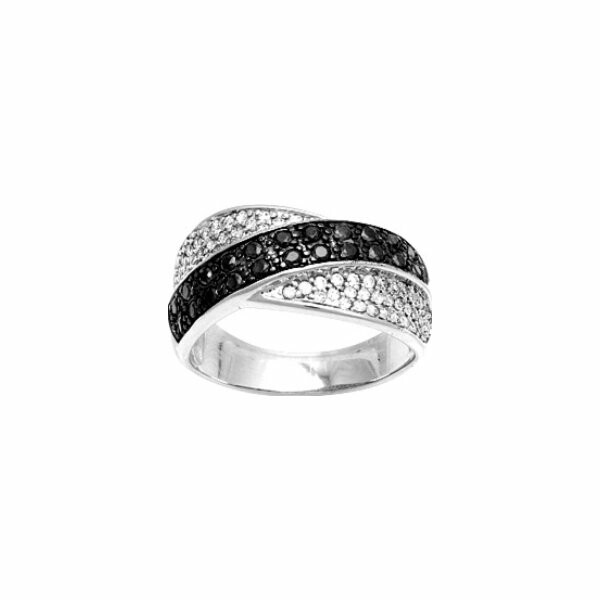 Bague en argent rhodié et oxyde de zirconium blanc et noir